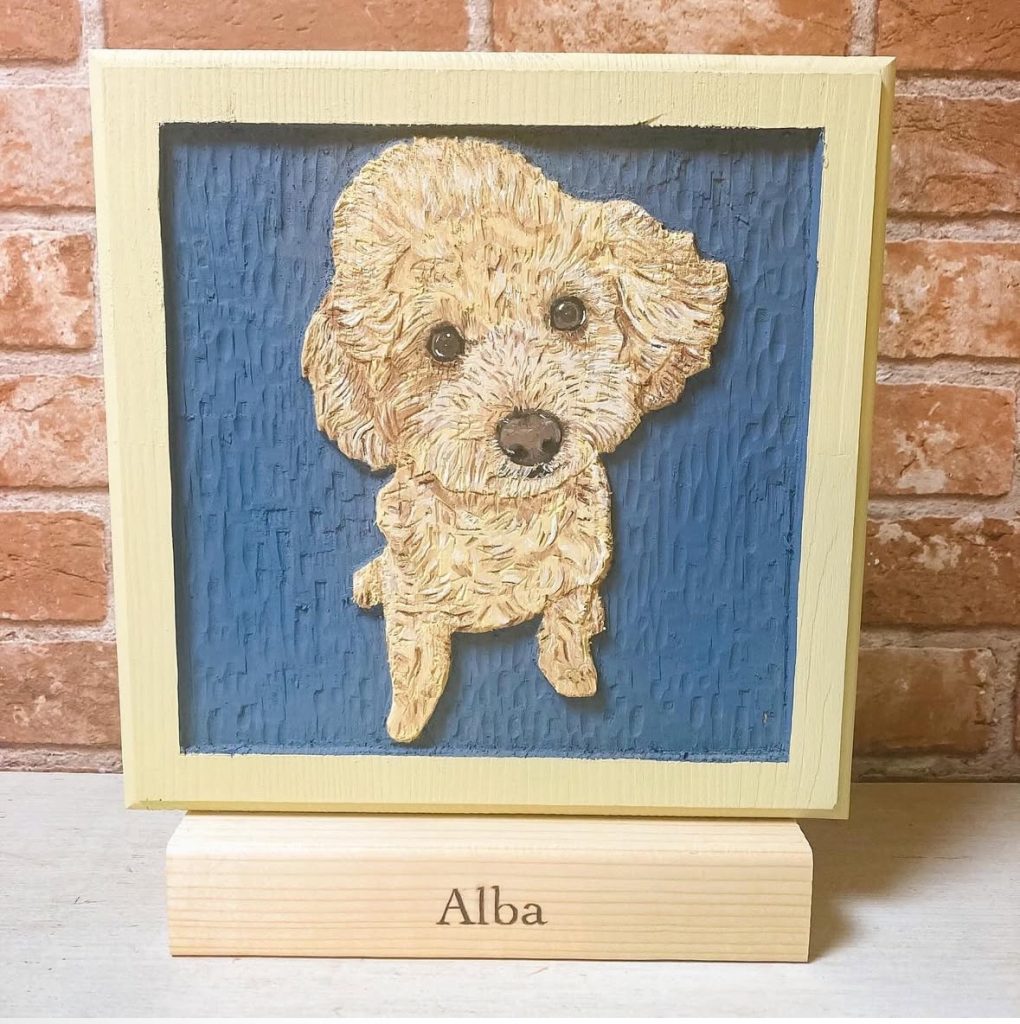 今ではワンちゃん以外の動物のご依頼をいただくこともある為、名称をアニマルレリーフとして日々お客様からの想いを形にするお手伝いをさせていただいています。