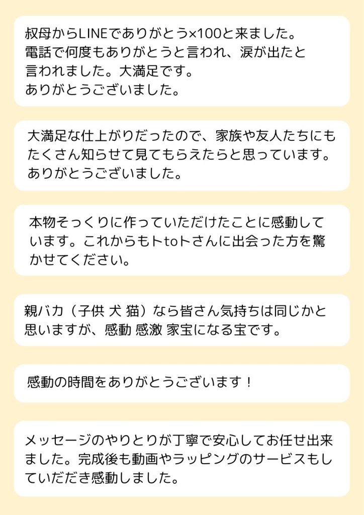 この動画を見たとき、お客様の想いがちゃんとご友人にも伝わった気がしてとても嬉しくなりました。