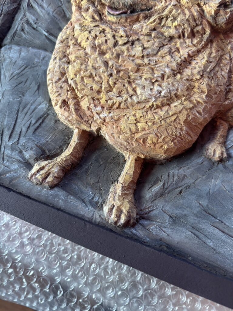 二代目アニマルレリーフでは、より立体的に『彫る』ことに注力し始めました。彫刻だからこそ表現できるリアルさや温かみを表現したいと思ったからです。思わず触りたくなるような立体感を出せるよう努めました。この頃は彫刻刀で彫り込む深さは10mm程度になりました。