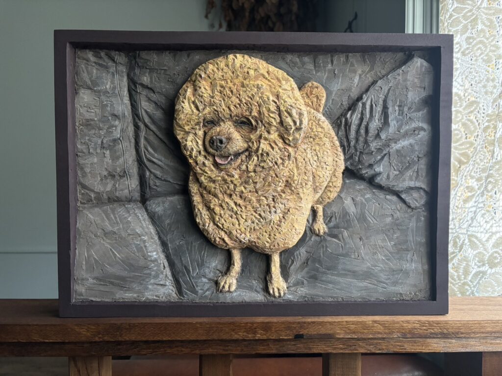 その結果、ワンちゃんレリーフは始めた頃よりさらに温かみのある作品に成長していると感じています。
